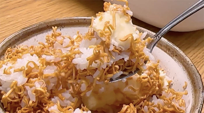 さらにバターをラーメンに砕き、ご飯の上にのせる「バタラー丼」も食していた。