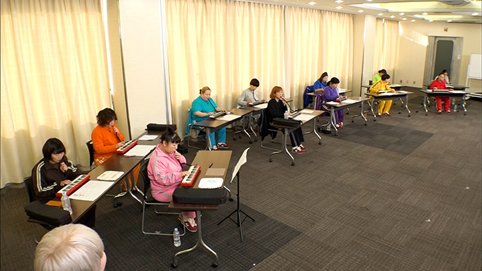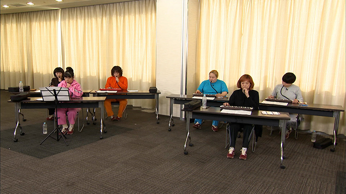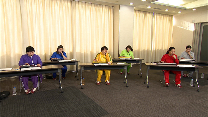 今回の課題曲は嵐の名曲「カイト」。5つのパートに分かれて、様々な音色の鍵盤ハーモニカを使用したアンサンブルを奏でる。