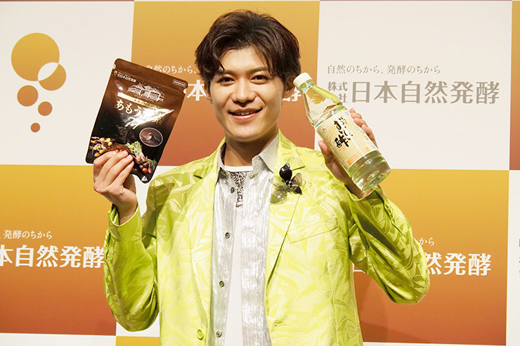 報道陣と招待されたファンクラブの会員たちが詰めかけるなか、最初に日本自然発酵の鈴木愛智副社長が「新浜レオンさんは元気で健康的なイメージがあり、周りの人たちを笑顔にさせる印象があります。そのような姿が、私たちの『自然の力と発酵の力を通じて元気と笑顔を届けていきたい』という企業理念に合っていると感じ、この度アンバサダーに就任していただくことになりました」とあいさつ。