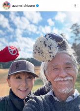 12月30日の投稿で一緒にゴルフを楽しんだことを報告。「冬ゴルフは超苦手だが、あまりの小春日和。ハーフだけ。ポカポカ。半袖のプレイヤーもいるぐらいのポカポカ。ゴルフクラブからの年越しそばのサービス、嬉しかった。打ち納め。楽しかった」とつづり、ゴルフ場で楽しそうに2人で顔を寄せ合った。仲良し夫婦ショットにフォロワーは「素敵な笑顔」とほっこりしていた。