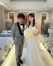 ウエディングドレス姿での夫とのツーショットや、和装でのケーキ入刀などの写真をアップし、「披露宴では(演歌歌手の)角川博さん、(タレントの)ミラクルひかるさんに余興で盛り上げていただきました」と感謝。「最高すぎます‼ 涙涙で大変でした」幸せいっぱいだった。