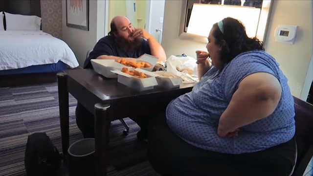 この時の体重は、ヴィアニーさん226キロ、アレンさん249キロだった。結婚から5年、2人の食欲はまったく変わらず。そしてある日、病院にヴィアニーさんが行くと、うっ血性心不全と診断。医師からは40歳までしか生きられないかもしれないといわれ、生きるために彼女は手術による減量を決意。