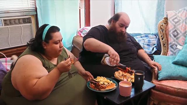 ヴィアニーさんは「食生活を変えなきゃいけないことはわかってるの。でも今の食事がなくなったら何のために目覚めるのかわからないわ」という。そんな妻のため、アレンさんは朝食にはベーコンにパンケーキ、スクランブルエッグと2人の好物を調理。そして朝食の後にはデリバリーしたチーズのかかったチキンとパスタに一人一枚のLサイズのピザを平らげる。