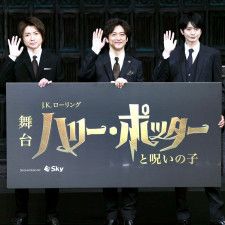 「ハリー・ポッターと呪いの子」初日に舞台上で笑顔を見せる(左から)藤原竜也、石丸幹二、向井理 (スポーツ報知) 俳優の藤原竜也、石丸幹二、向井理がトリプルキャストで主演を務める舞台「ハリー・ポッターと呪いの子」(東京・TBS赤坂ACTシア...